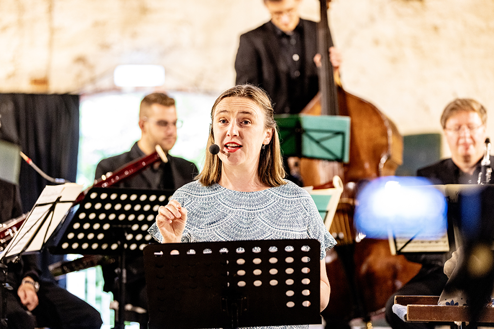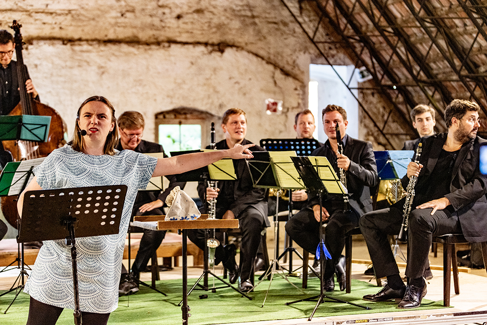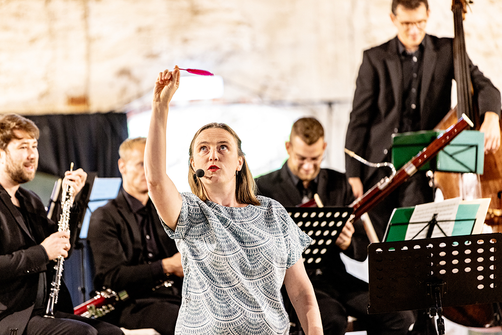Nicht nur in der Geschichte spielt der Wind eine besondere Rolle. Auch auf der Bühne würde ohne bewegte Luft nicht viel passieren. Mit ihren Blasinstrumenten und der Serenade „Gran Partita“ von Wolfgang Amadé Mozart hauchen die Musikerinnen und Musiker dem Märchen „Der Wind und die 13 Geschwister“ Leben ein und nehmen das Publikum mit auf eine abenteuerhafte Reise.